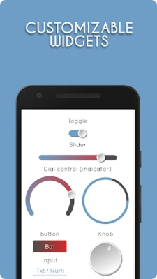 Use commercial boards such as Arduino, ESP32, ESP8266, Raspberry PI, STM32 Nucleo or any other microcontroller device to create stunning graphical user interfaces on Android. Control devices and change interfaces on the fly.